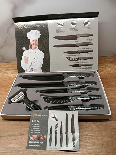 Sprzedam nowy zestaw noży kuchennych szwajcarskiej firmy Zurrichberg. Najwyższa jakość stali nierdzewnej. Noże ostre, ...